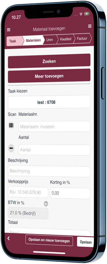 Eenvoudige registratie, zodat je altijd alle materialen op je werkbon hebt.