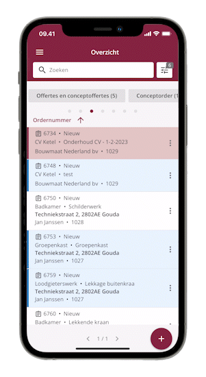 De visuele werkstroom onder elke opdracht geeft snel een beeld van hoever jij of jouw medewerker is met een opdracht, zodat je eenvoudig de voortgang van het werkproces op elke werkbon kunt volgen.
