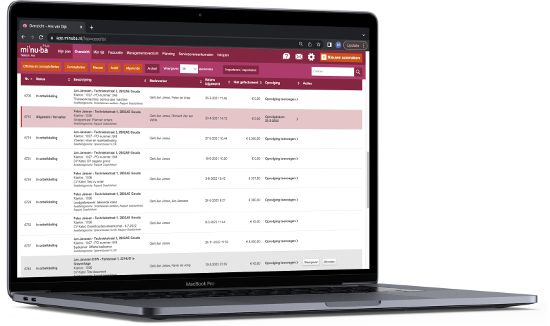 Minuba heeft een sterk supportteam dat je kunt bereiken van maandag tot en met vrijdag tussen 09:00 en 16:00 uur. We reageren altijd razendsnel.